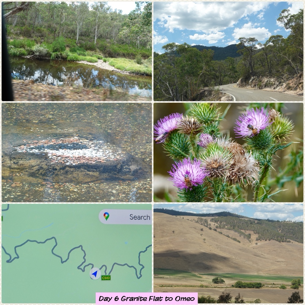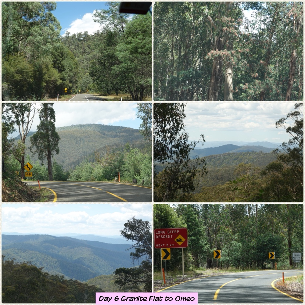 A quick stop at Granite Flat which was also a gold village. Only the Church & cemetery remain. Then onto towards Omeo on an extremely bendy road. It was 108km from Mitta & there were no straight sections!