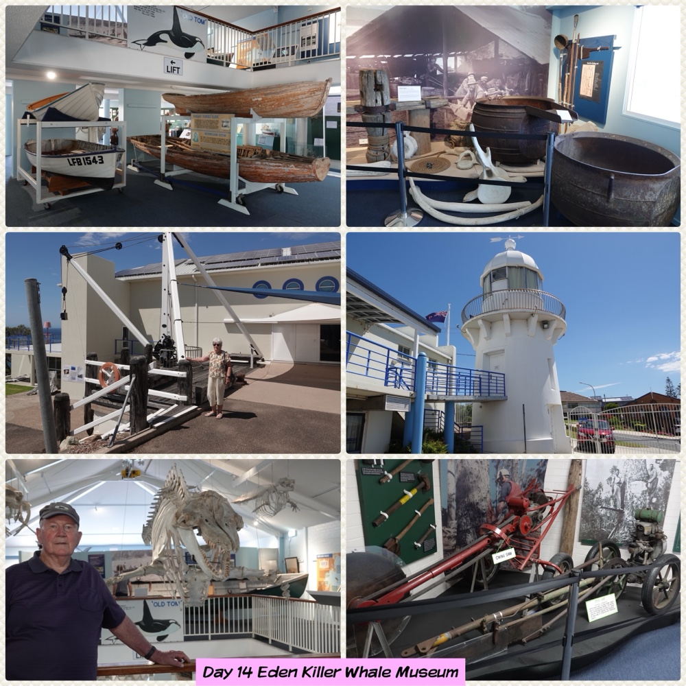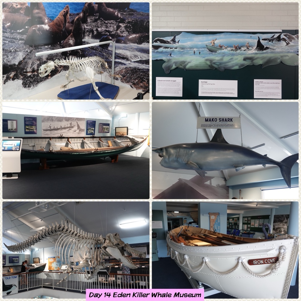 Then into Eden to visit the Eden Killer Whale Museum which we found very interesting. It centres on the early whaling history of the area & the role Killer Whales played in the capturing of other whales. They really did help the whalers round up the others. The most famous was “Tom” and his skeleton is in the museum. He was in the area for 50 years.