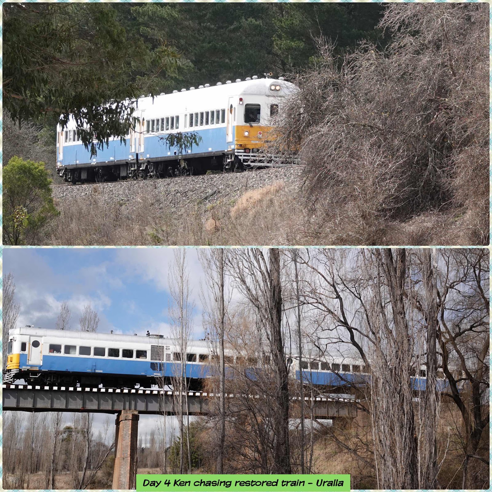 A rail motor which was in Armidale has been restored and they started running between Armidale & Uralla today so Ken had to seek it out.